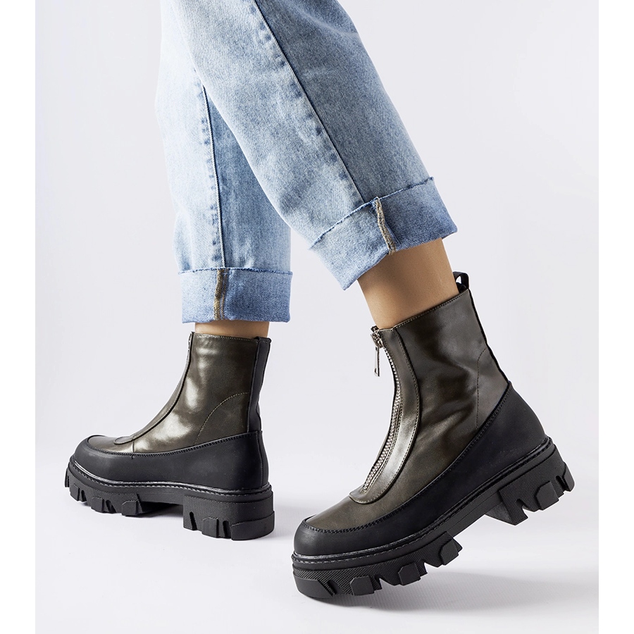 Detalhes: Botins maciços verdes escuros com zíper Morley