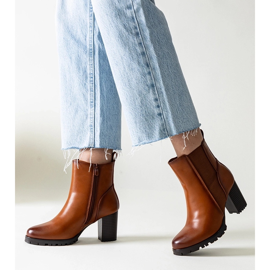 Botas marrons no posto de couro Zinah é uma proposta ideal para mulheres que valorizam o estilo e o conforto. O salto alto com uma altura de 8 cm acrescenta elegância, e o design estável faz você se sentir confiante durante qualquer passo. O calçado foi feito de couro ecológico de camelo, o que o encaixa nas últimas tendências da moda.