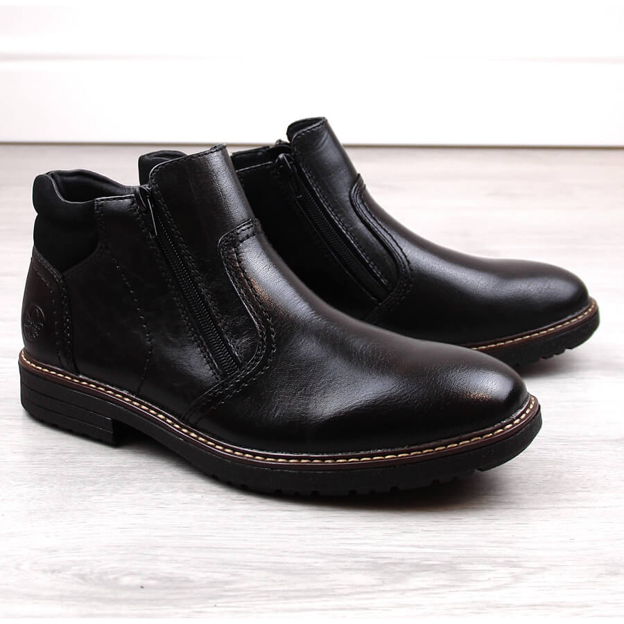 Detalhes: Botins masculinos de couro, forrados de lã, pretos Rieker 33151-00