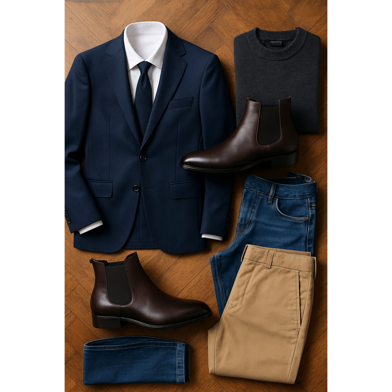 Hoje, os botins estão nos guarda-roupas de homens que valorizam a combinação entre praticidade e estética. Eles são formais o suficiente para o escritório, mas também perfeitos para um estilo casual do dia a dia.