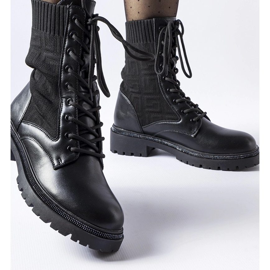 Botas de meia preta com zircões emanuele - estilo e conforto diariamente