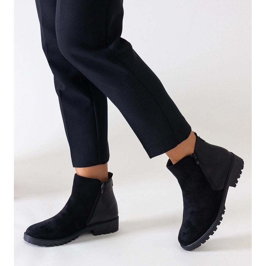 Detalhes: Botins plataforma pretos feitos de camurça ecológica Kirla