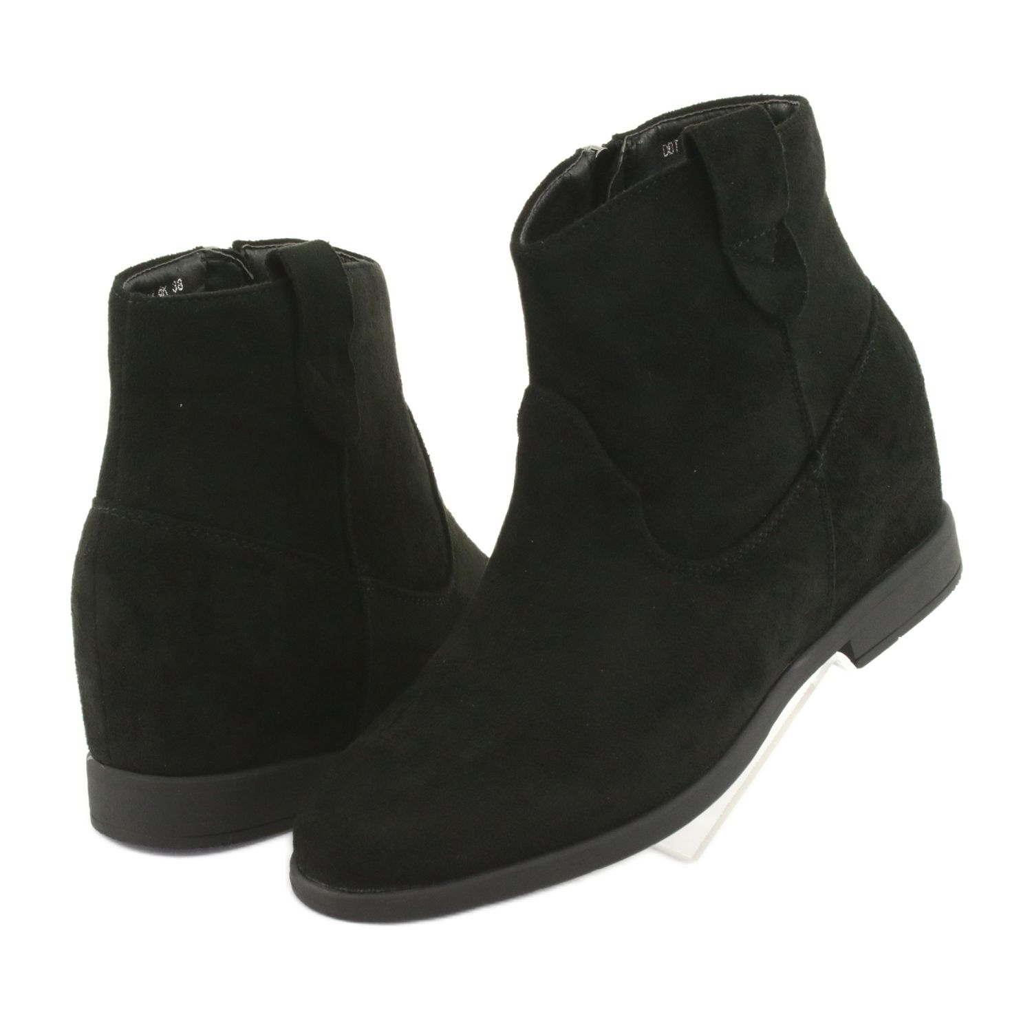 Confeccionadas em couro camurça ecológico de alta qualidade, as botas têm um aspecto extremamente nobre e sua cor preta profunda as torna universais. O fecho com zíper não é apenas conveniente de colocar, mas também um elemento elegante. No entanto, a cunha oculta de 5 centímetros de altura enfatiza sutilmente a figura, permitindo conforto e estabilidade ao caminhar.