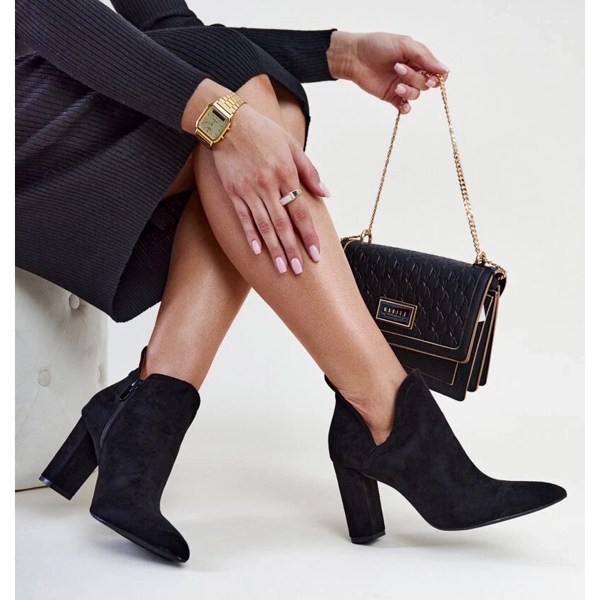 As botas Taylana são práticas - presas com um zíper, o que facilita a saída e a decolagem. Sua cor preta os torna facilmente combinados com vários acessórios, e a forma única lhes dá notas de extravagância e frescura.