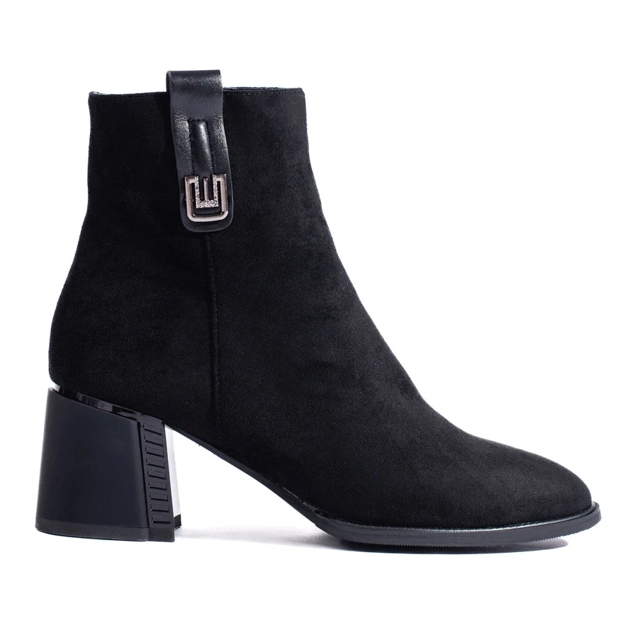 Detalhes: Botins pretos clássicos de camurça Shelovet com salto alto