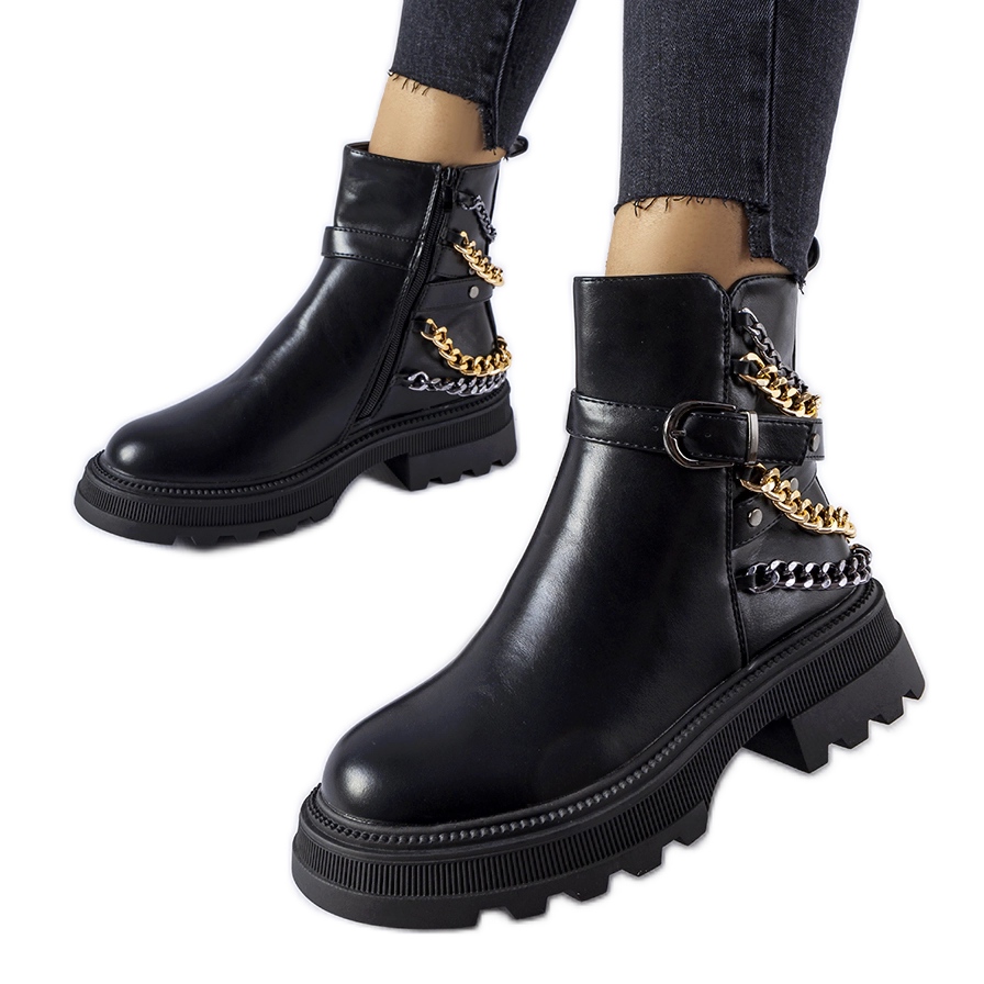 Inna marka Botins pretos com correntes decorativas da Bonenfant
