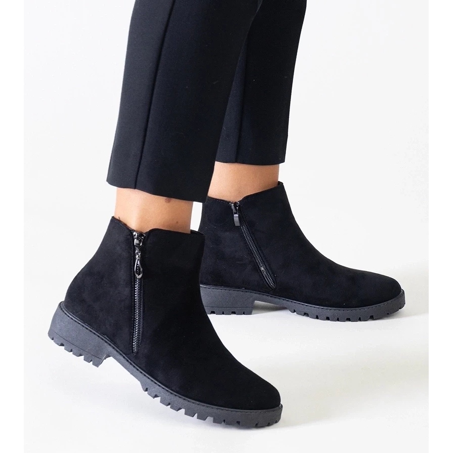 Detalhes: D/CEO Botins pretos com detalhes em metal, camurça ecológica Branda