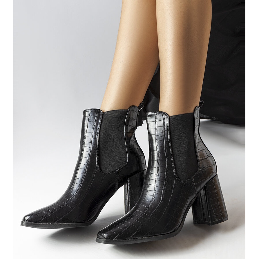 Detalhes: Botins pretos com imitação de pele de crocodilo, Weigall
