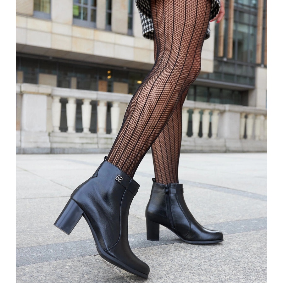 Botas elegantes e práticas - Barreto combinam design elegante com o conforto de usar. A parte superior de couro ecológica preta decorada com zircões sutis oferece estilo de sapatos e um personagem universal, que se adapta a estilizações cotidianas e mais iniciais. O dedo do pé de amêndoa e um salto estável em um pilar de 6 cm de altura fornecem um visual elegante sem deixar o conforto.