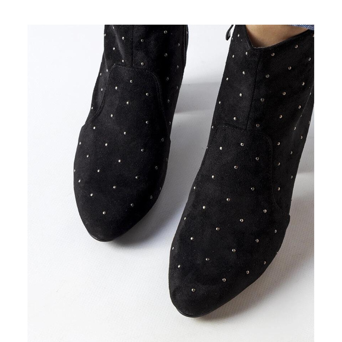 Detalhes: Botins pretos com strass, camurça ecológica Suvi - Solea