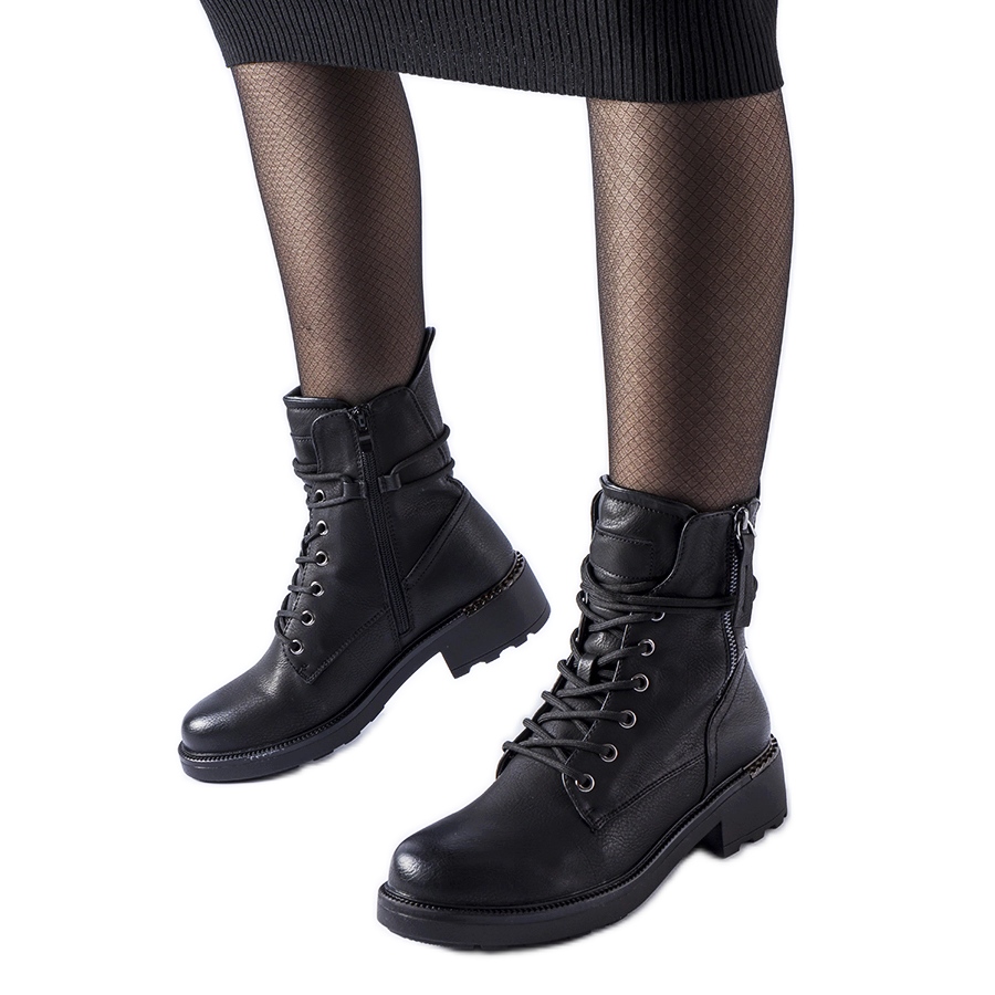 Detalhes: Botins pretos com zíper decorativo Emarese