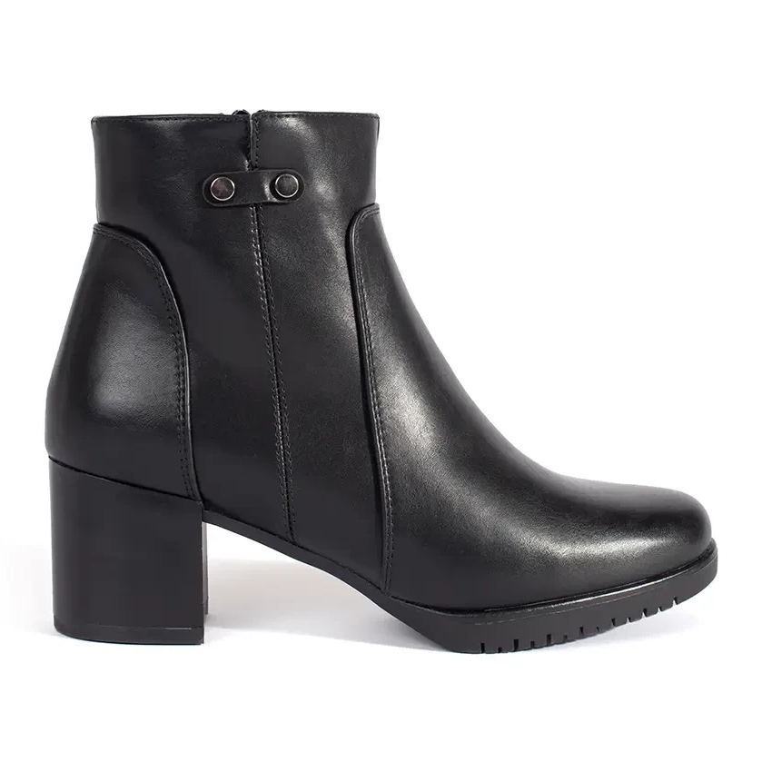O calcanhar de 6 cm de altura na forma de um post garante estabilidade, e o salto -up construído acrescenta caráter e enfatiza a elegância. O nariz redondo torna as botas não apenas na moda, mas também confortáveis de usar, o que será apreciado por todas as mulheres. O pêlo dentro das botas faz com que os pés enrolados em calor agradável, o que é extremamente importante no outono e no inverno.
