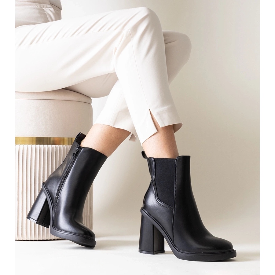 A altura do calcanhar de 9 cm significa que as botas não apenas prolongam lindamente as pernas, mas também são confortáveis de usar graças ao post estável. Feito de couro ecológico de alta qualidade, eles garantem durabilidade e facilidade de atendimento. O aquecimento do interior cuidará do conforto térmico, mesmo em dias mais frios, e o nariz redondo lhes dá universalidade.
