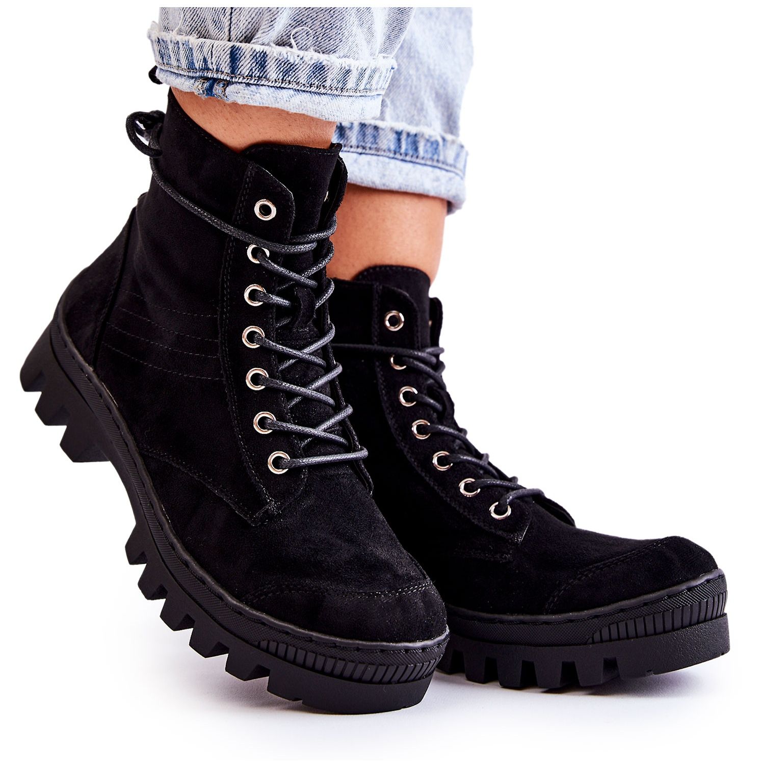 S.Barski S.Barski Botins Trapper em camurça com costura preta preto