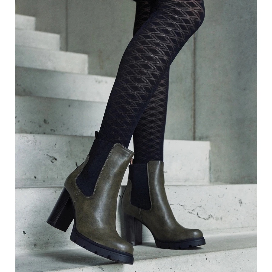 As botas verdes inseridas no post ecológico são a escolha perfeita para mulheres que valorizam o estilo e o conforto. Seu design moderno os torna perfeitamente adequados às tendências da moda, e um salto alto e estável com uma altura de 9,5 cm acrescenta elegância e diminui a figura.