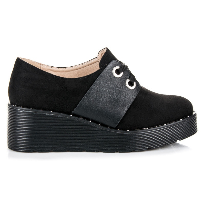 Graças à plataforma de 5,5 cm de altura, o calçado proporciona excelente estabilidade e conforto durante todo o dia. A clássica cor preta faz com que estes sapatos combinem perfeitamente com uma variedade de estilos - tanto casuais quanto mais elegantes.
