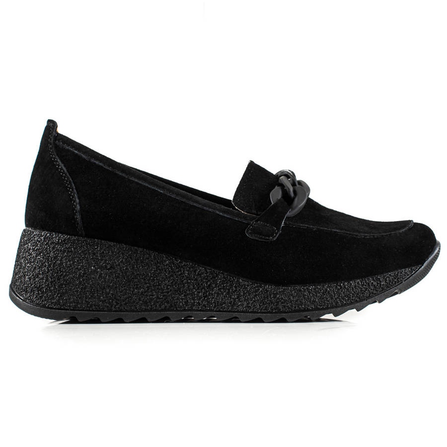 Este modelo é montado sobre uma cunha de 5 cm de altura, o que acrescenta alguns centímetros de altura ao mesmo tempo que garante estabilidade e conforto. A sola de plástico marrom com banda de rodagem irá surpreendê-lo pela sua aderência e flexibilidade, e a corrente decorativa acrescenta um toque de estilo casual e elegante.