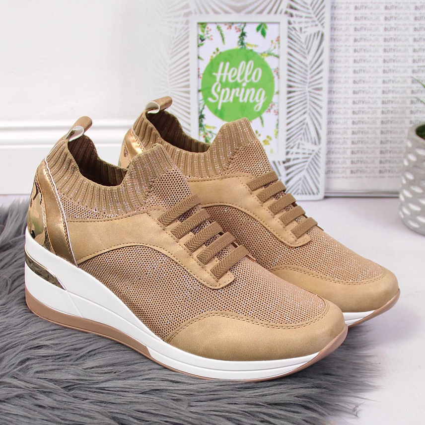 Detalhes: Brogues femininos em cunha, slip on, bege Artiker