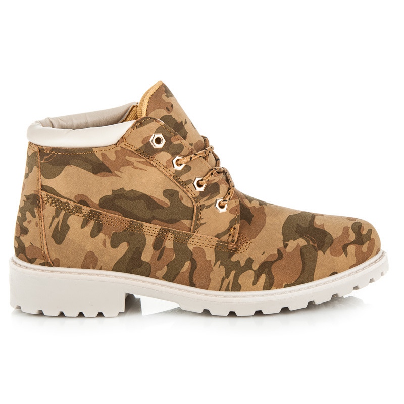 Sola de plástico com protetor e salto plano de 3 cm de altura garantem estabilidade a cada passo. A biqueira redonda e o salto macio embutido tornam essas botas não apenas práticas, mas também eficazes. O padrão camuflado acrescenta personalidade, combinando perfeitamente com o estilo casual.
