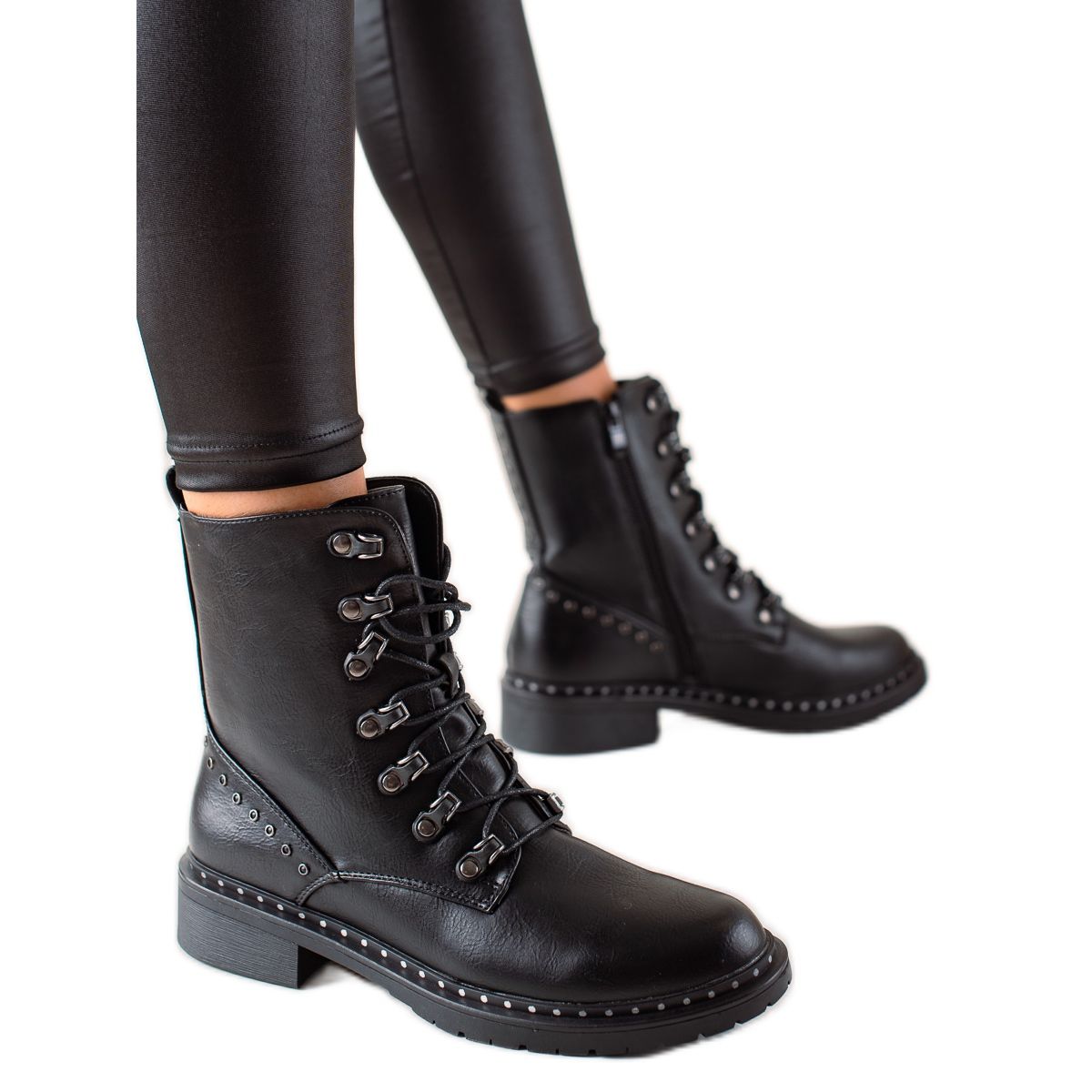Detalhes: Super Me Caçadores casuais feitos de couro ecológico preto