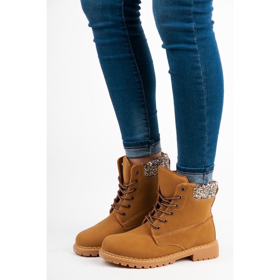 A altura do tornozelo acrescenta personalidade, e a cor marrom e bege faz com que as botas combinem com vários estilos - tanto jeans quanto saias. Graças à falta de isolamento, são perfeitos para os dias mais quentes, e o seu padrão diferenciado com detalhes em glitter fará de você sempre o centro das atenções.