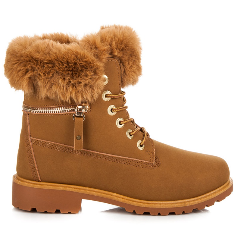 Aqui está o calçado perfeito para os dias de inverno - ténis castanhos com pele na parte superior, que aliam estilo e conforto. Estes botins femininos de uma marca conhecida encantam tanto pela sua aparência como pela sua funcionalidade.