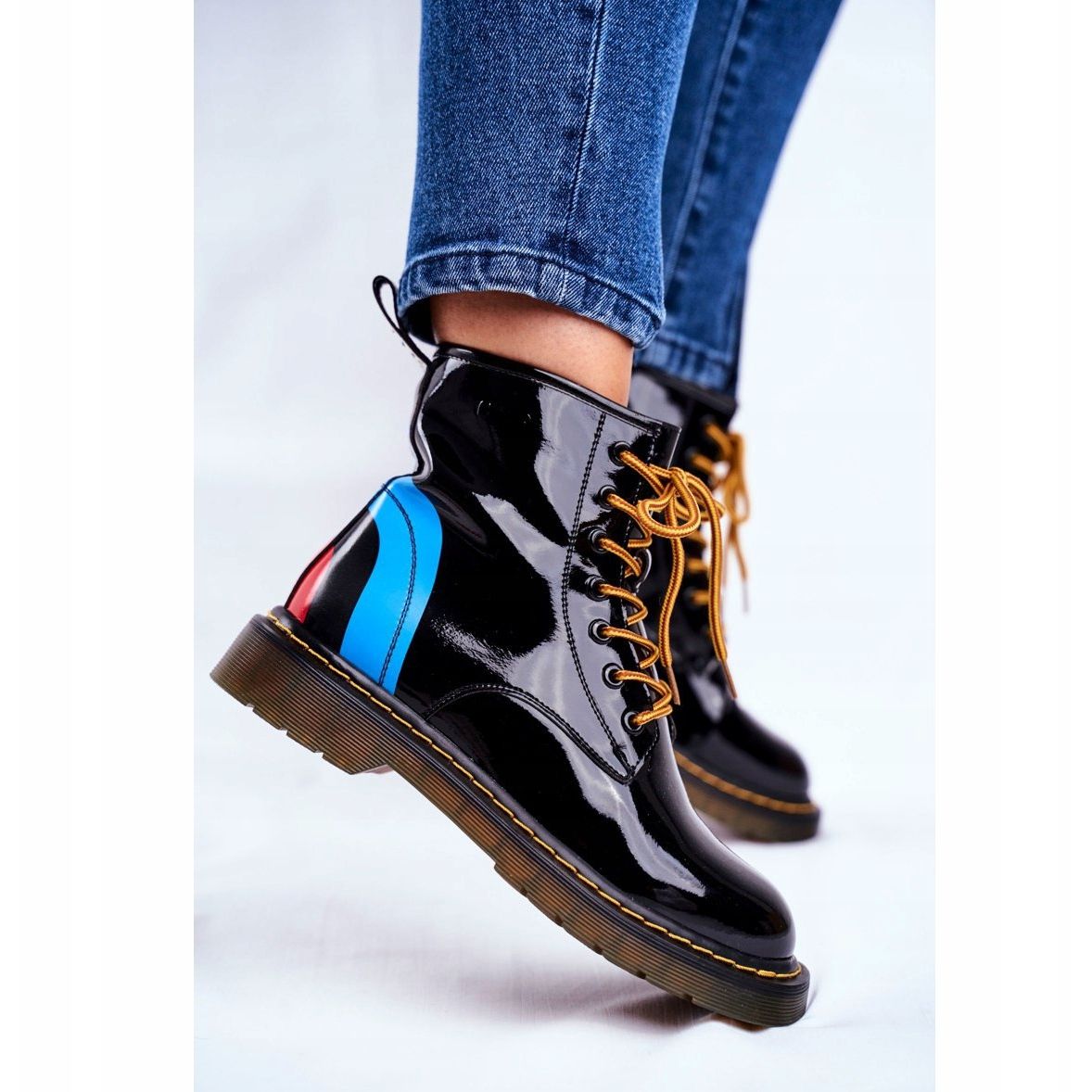 Feitas de couro envernizado da mais alta qualidade, as botas não são apenas duráveis, mas também elegantes e atraentes. Uma estampa extravagante ao redor do calcanhar acrescenta personalidade, e a costura amarela na sola e nos atacadores contrasta perfeitamente com a cor preta profunda, criando um todo atraente.