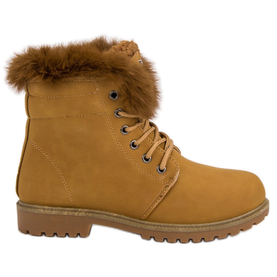 As botas são fechadas com cadarço confortável, o que permite um fácil ajuste a qualquer perna. A sua clássica cor castanha torna-os fáceis de combinar com vários estilos - tanto para o uso diário como para ocasiões mais elegantes. A altura do tornozelo realça ainda mais a silhueta feminina e a falta de um padrão distinto torna-os um elemento universal em qualquer guarda-roupa.