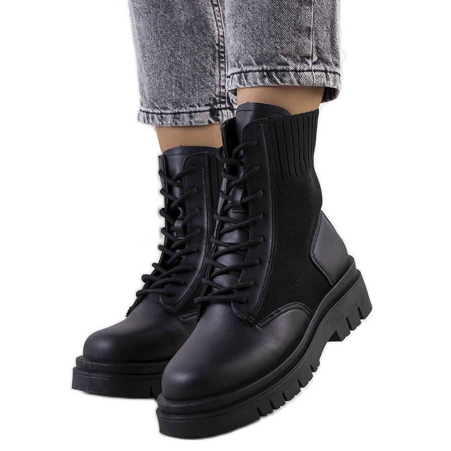 As botas Lennon elegantes combinam o caráter cru dos trabalhadores com conforto todos os dias. A parte superior do tornozelo é feita de material flexível e listrado que se adapta bem à panturrilha, enquanto a frente e a parte traseira do sapato são feitas de um pouco de eco de alta qualidade. Modelo de renda -up na frente no tom dos sapatos, incorporado em uma sola enorme de borracha plana com recortes - ideal quando você deseja adicionar um estilo de garra. Os sapatos não estão isolados, então eles funcionarão nos dias mais amenos do outono.