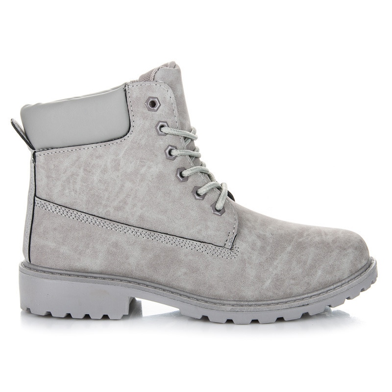 Fabricados com materiais de alta qualidade, os caçadores caracterizam-se por uma sola sintética que garante boa aderência e durabilidade. O interior dos sapatos com acabamento em tecido torna-os agradáveis de usar e a clássica cor cinza facilita a combinação com vários estilos.