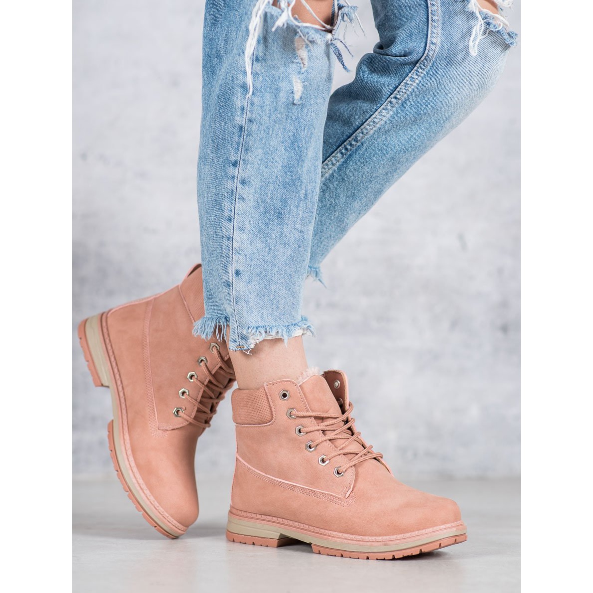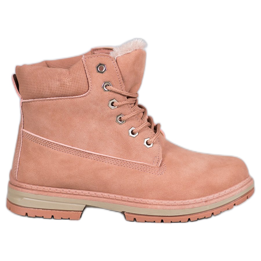 O material externo em couro ecológico de alta qualidade garante durabilidade e a sola sintética com banda de rodagem oferece aderência adequada. Estas botas de caminhada têm biqueira redonda, o que as torna muito práticas e confortáveis. A altura do salto de 3 cm e o cabedal chegando acima do tornozelo fazem com que o modelo alie conforto a visual elegante.