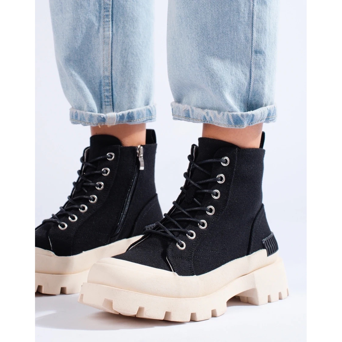 Trappers elegantes e funcionais de S. Barski em Black Universal - perfeito todos os dias. A combinação de estilo casual urbano com conveniência faz com que os sapatos funcionem muito bem em muitos estilos - de jeans a vestidos com calças mais grossas.