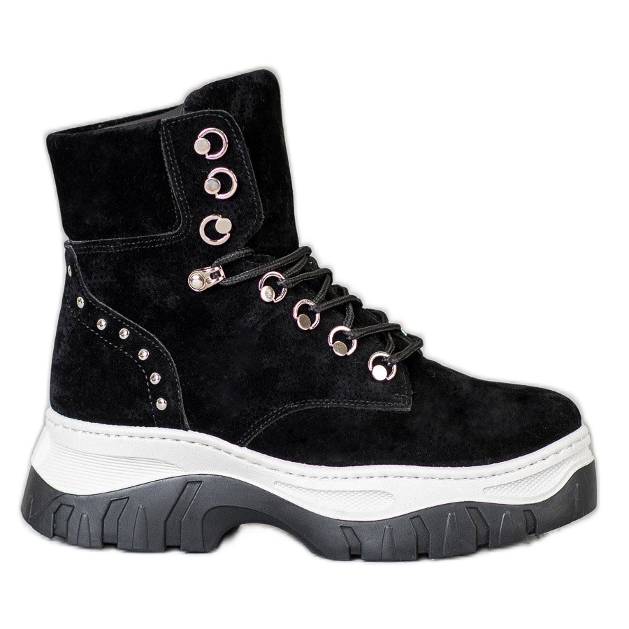 Uma enorme plataforma de 4 cm de altura e um salto plano de 6 cm garantem conforto de uso, o que torna estas botas a companhia ideal para todos os passeios do dia a dia. São perfeitos para o outono e inverno, oferecendo estabilidade e conforto mesmo em caminhadas mais longas. Graças à sola de plástico com banda de rodagem, temos a certeza que os nossos passos serão confiantes e seguros em diversas superfícies.