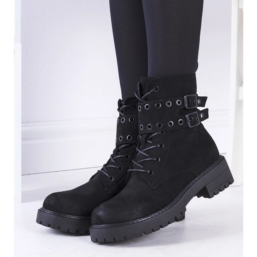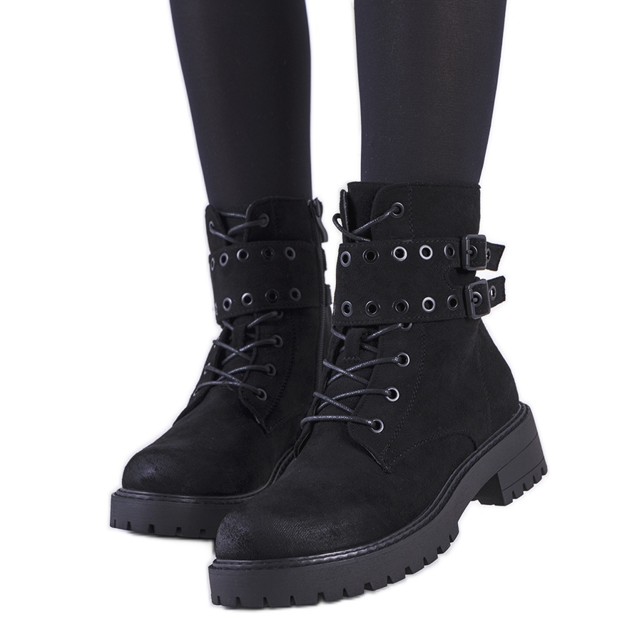 Os trappers clássicos de Fallkirk Black são uma combinação de conveniência e um estilo moda e cru. Situado em uma sola de plástico grossa e protegida, com nariz arredondado e cinto decorativo com fivelas, elas são perfeitas para estilizações casuais diárias. A parte superior feita de couro ecológico de camurça, interior isolado - perfeito para a temporada de outono/inverno.
