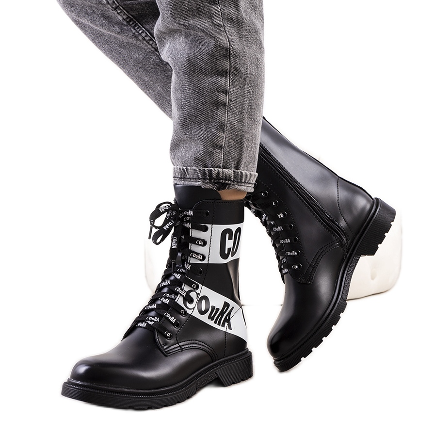 Botas elegantes em uma atmosfera de rock que funcionará nas estilizações cotidianas e ousadas. O modelo de barco 8069 combina a aparência elegante de trappers com soluções práticas: superior de couro ecológico com uma impressionante impressão "monta", laço confortável para o ajuste perfeito e um zíper que facilita a colocação rapidamente.