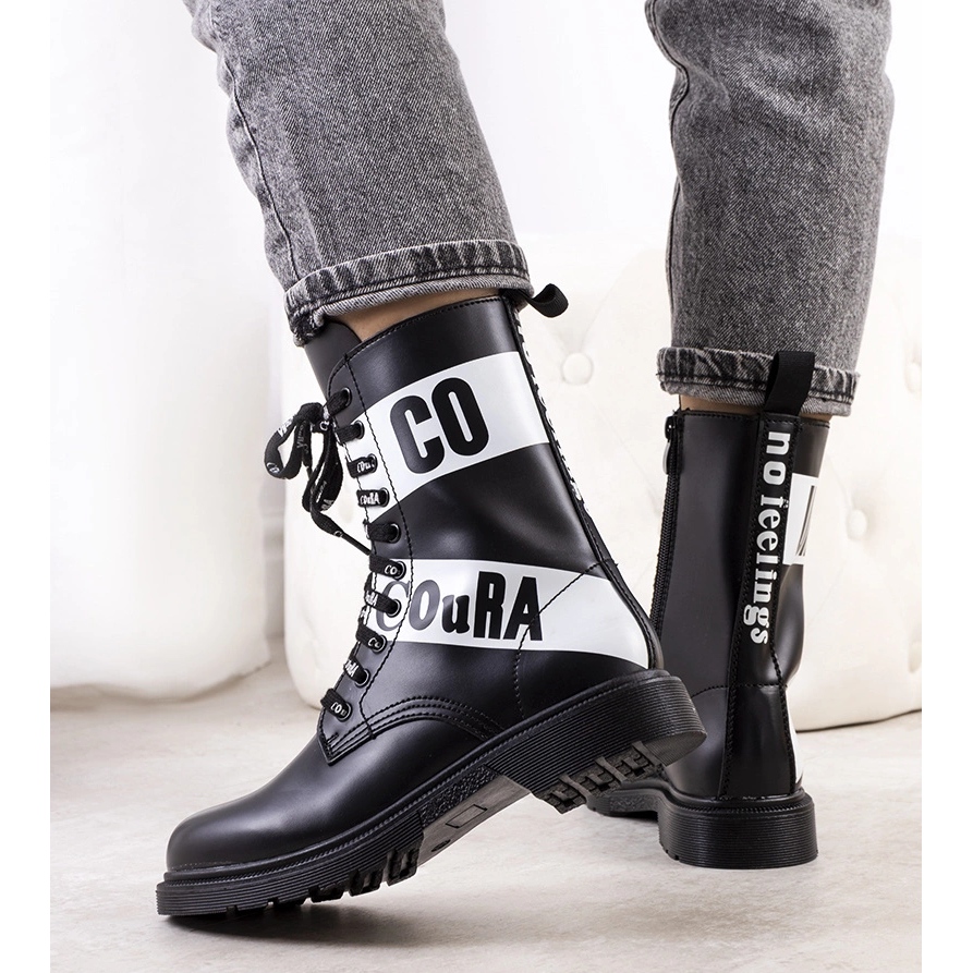 Botas pretas de 8069 botas decoradas com inscrições MOTA - devem ter para o outono