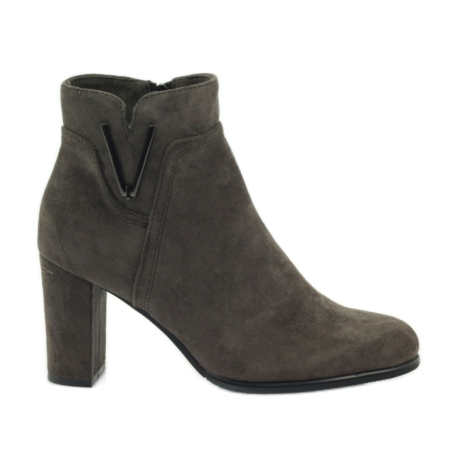 Confeccionadas em couro camurça ecológico de alta qualidade, as botas encantam pelo acabamento cuidadoso e belo acabamento. Seu design clássico faz com que eles se encaixem perfeitamente em vários looks - formais e casuais. O salto baixo, de 7 cm de altura, garante conforto de uso o dia todo, e a decoração sutil na lateral confere-lhes um caráter único.