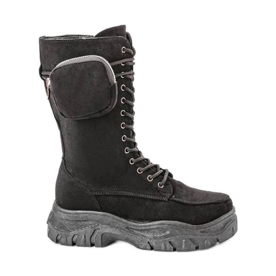Calçados esteticamente feitos, lisos e pretos são perfeitos para os dias mais frios de primavera ou outono. O isolamento quente certamente funcionará nos dias mais frios, garantindo o conforto dos seus pés. O conforto também é complementado por fechos sólidos - atacadores e zíper, que facilitam o ajuste do calçado às necessidades individuais.