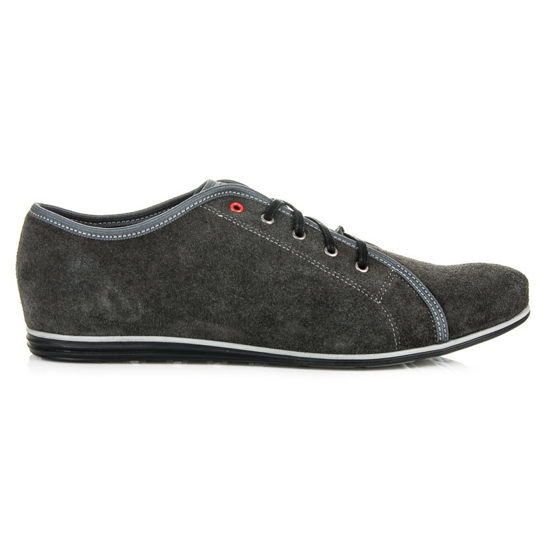O calçado esportivo masculino Mckeylor - cinza, confeccionado em couro natural, combina design moderno com conforto de uso. A cor cinza neutra e o visual minimalista sem estampa fazem com que os sapatos combinem com estilos casuais do dia a dia, agregando elegância discreta a eles. Os sapatos com atacadores, biqueira redonda e sola de 2 cm são uma solução universal para o uso diário - para trabalho, reuniões de amigos ou viagens curtas.