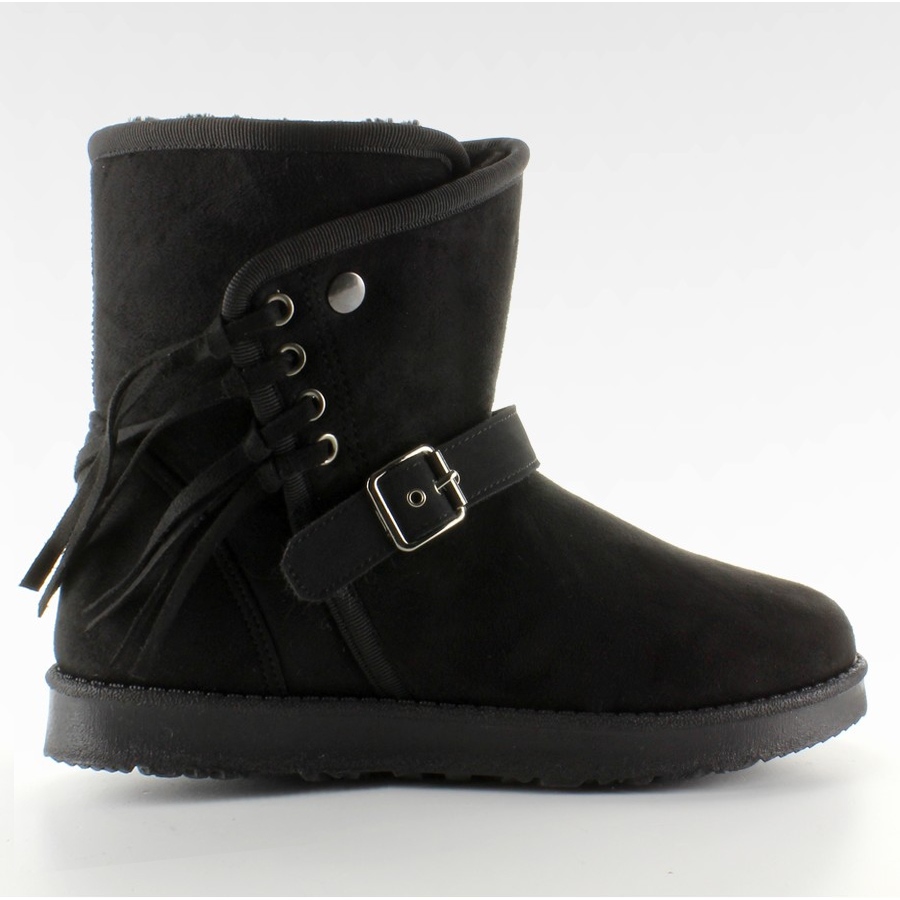 Lindas emas femininas confeccionadas em camurça ecológica, perfeitas para os dias de inverno. Uma sola grossa e isolante, pêlo muito grosso no interior e franjas decorativas combinam conforto e um visual moderno. Os sapatos são leves, cuidadosamente confeccionados e ficam lindos na perna.