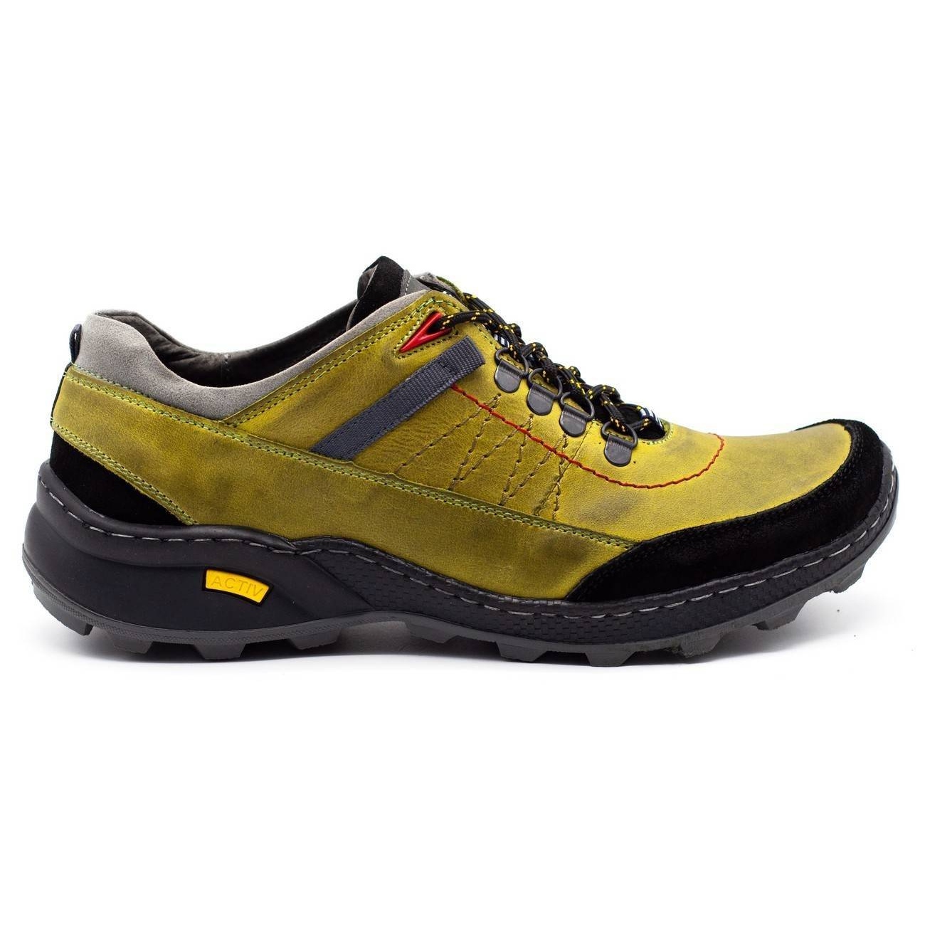 Sapatos masculinos elegantes e confortáveis com um corte de trekking, que funcionará diariamente e durante viagens mais curtas. A parte superior externa feita de couro natural de grãos garante uma aparência elegante e a facilidade de limpeza, e a inserção de couro garante a circulação de ar adequada dentro do calçado. A sola leve e flexível se adapta à forma do pé, que se traduz em alto conforto ao longo do dia.