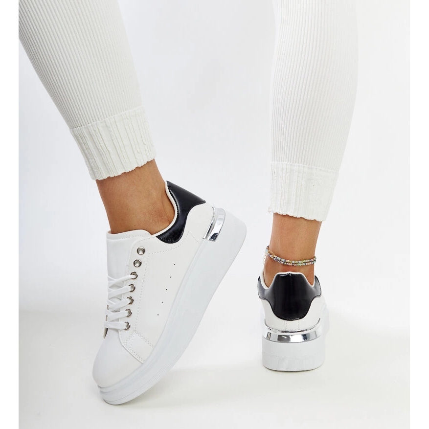 Apresentamos sapatos esportivos brancos com uma inserção de gemre preto - uma ótima opção para todas as mulheres da moda que valorizam não apenas o estilo, mas também o conforto. Esses sapatos elegantes são caracterizados por um nariz baixo e redondo, que oferece não apenas conforto, mas também leveza, graças às quais são perfeitas para as atividades diárias.