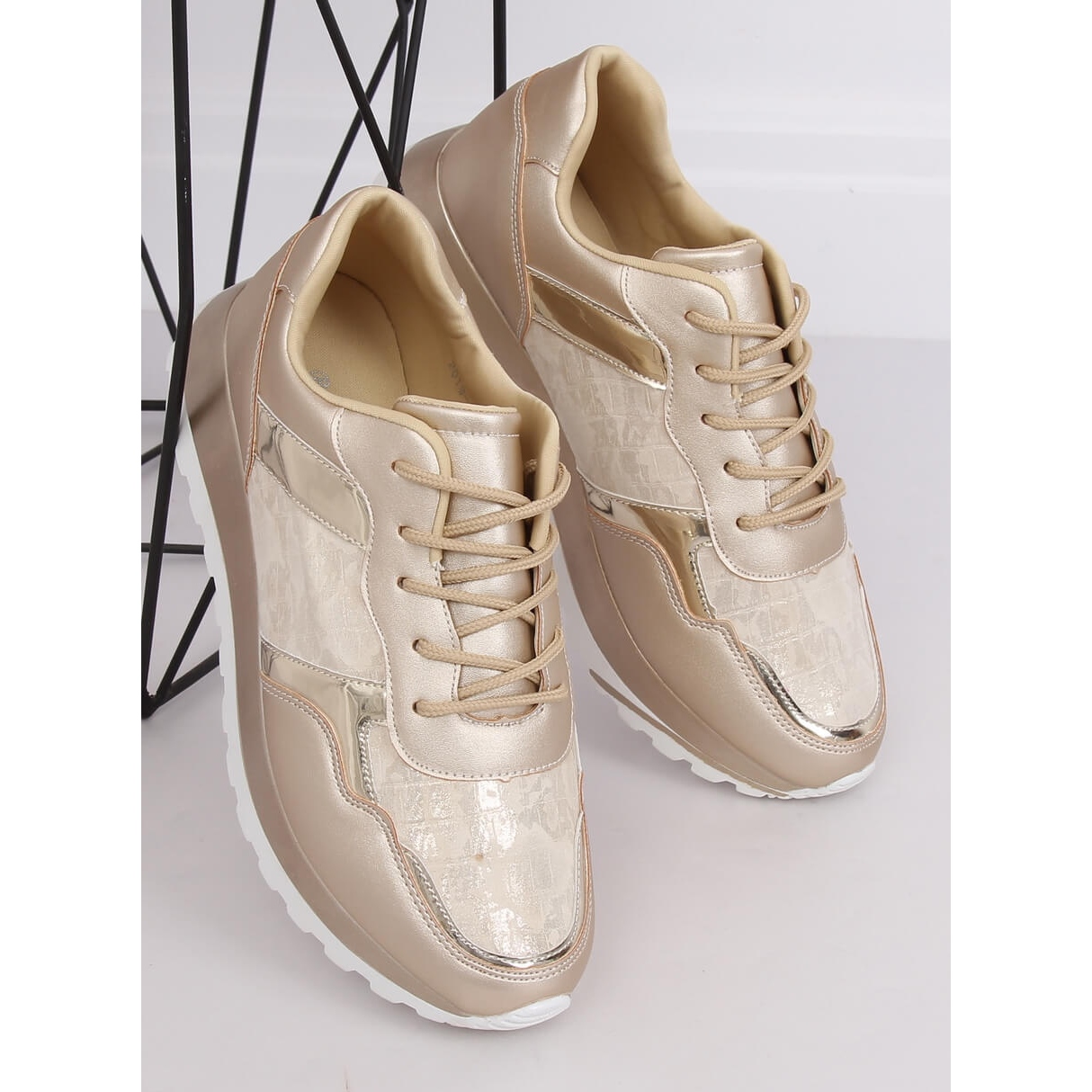 Os calçados esportivos 2019-447 Gold são um modelo sem estampa, o que os torna muito universais - combinam perfeitamente com estilos casuais e mais elegantes. Não perca a oportunidade de se destacar da multidão e adicionar um pouco de brilho ao seu look do dia a dia. Estes sapatos na embalagem original do fabricante são um must-have para a próxima temporada!