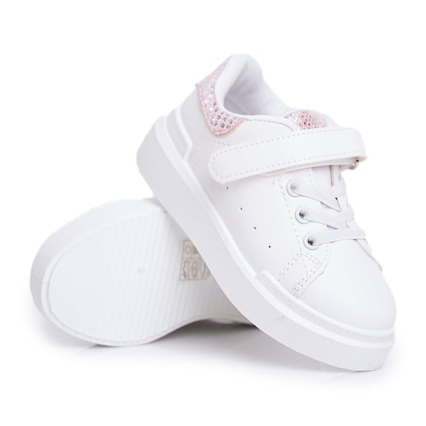 **FRROCK Calçado desportivo infantil com velcro branco Ilonka rosa**
