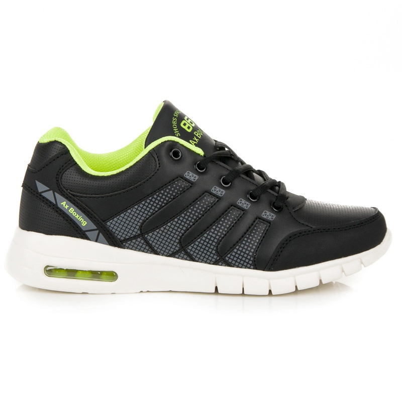 Axe Boxing - calçado desportivo preto para homens que valorizam conforto e visual moderno. O modelo combina uma parte superior preta atemporal com uma sola branca contrastante e um interior energético verde neon - um toque sutil que os destaca da multidão.