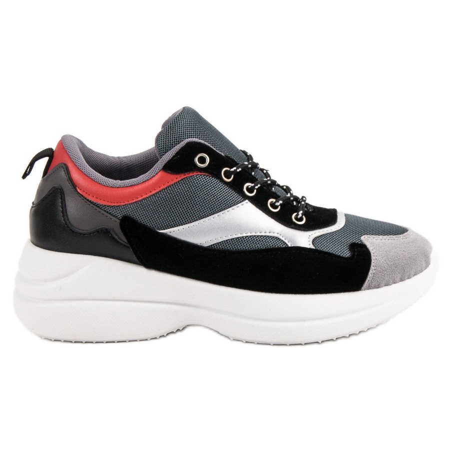 Apresentamos os sapatos plataforma da moda em versão cinza multicolorida, que certamente se tornarão um elemento favorito de qualquer estilo. Este modelo único, criado por uma marca de renome, combina funcionalidade e design extraordinário.
