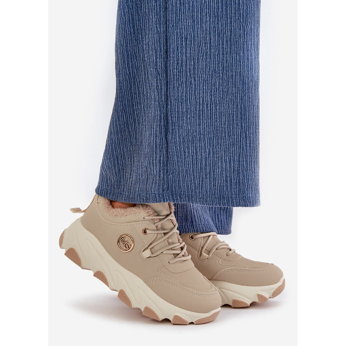 Sapatos esportivos femininos isolados atados na plataforma bege bialoa é a combinação perfeita de conforto, calor e design da moda, que funcionará muito bem em dias mais frios. Graças ao isolamento de peles, esses tênis proporcionarão excelente isolamento, protegendo os pés do frio.