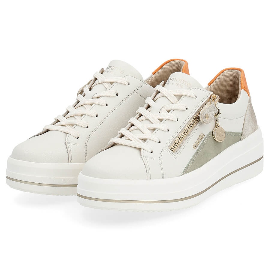 Detalhes: Calçado esportivo feminino confortável de couro, bege Remonte D1C01-81