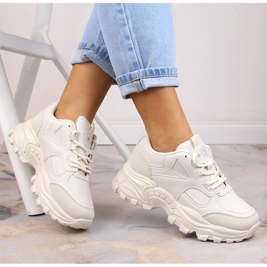Detalhes: Calçado esportivo feminino na plataforma bege eVento 5465