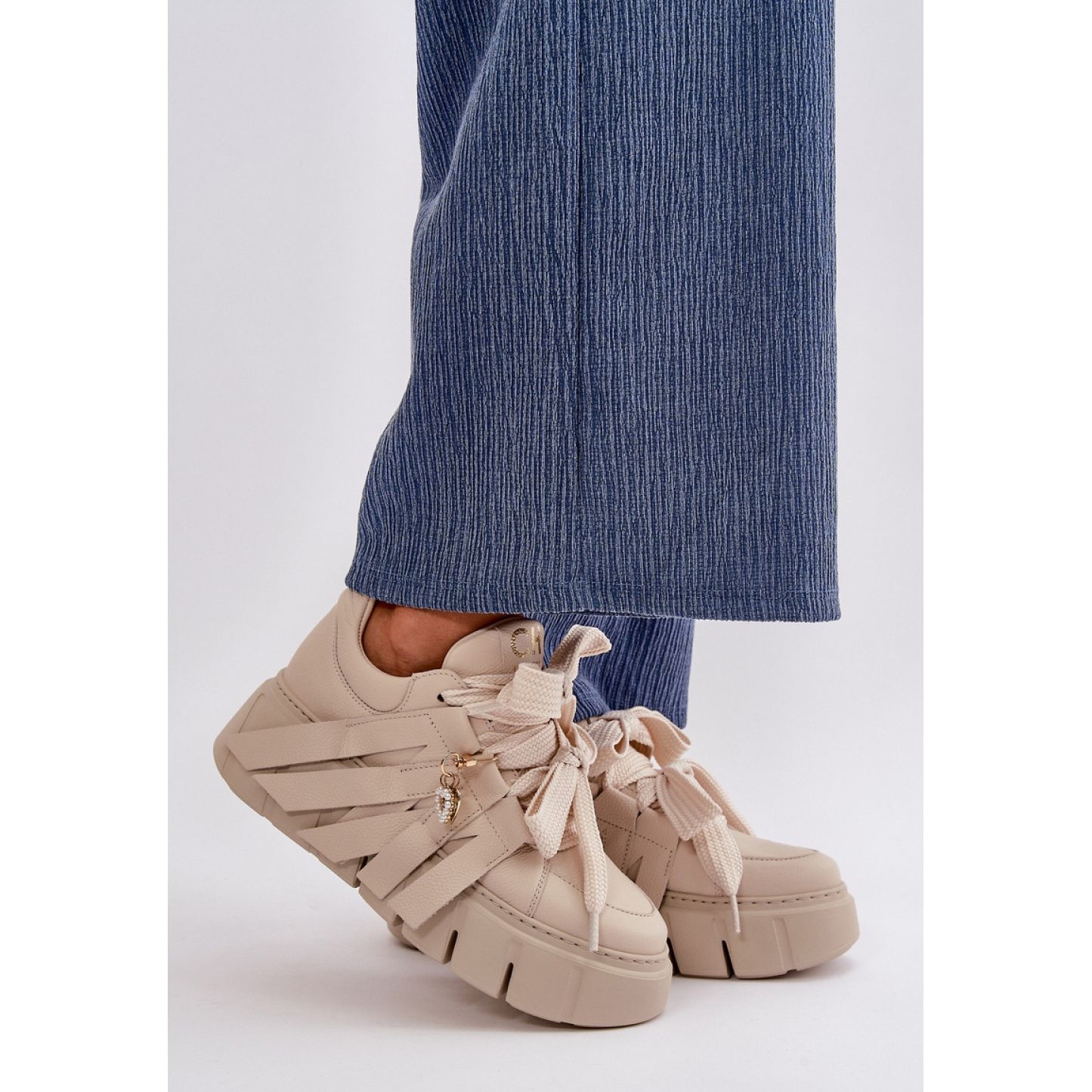 Uma inserção de couro natural conveniente garante conforto ao usar o dia inteiro, e uma tonalidade bege bem -escolhida faz com que os sapatos se encaixem facilmente em qualquer guarda -roupa.